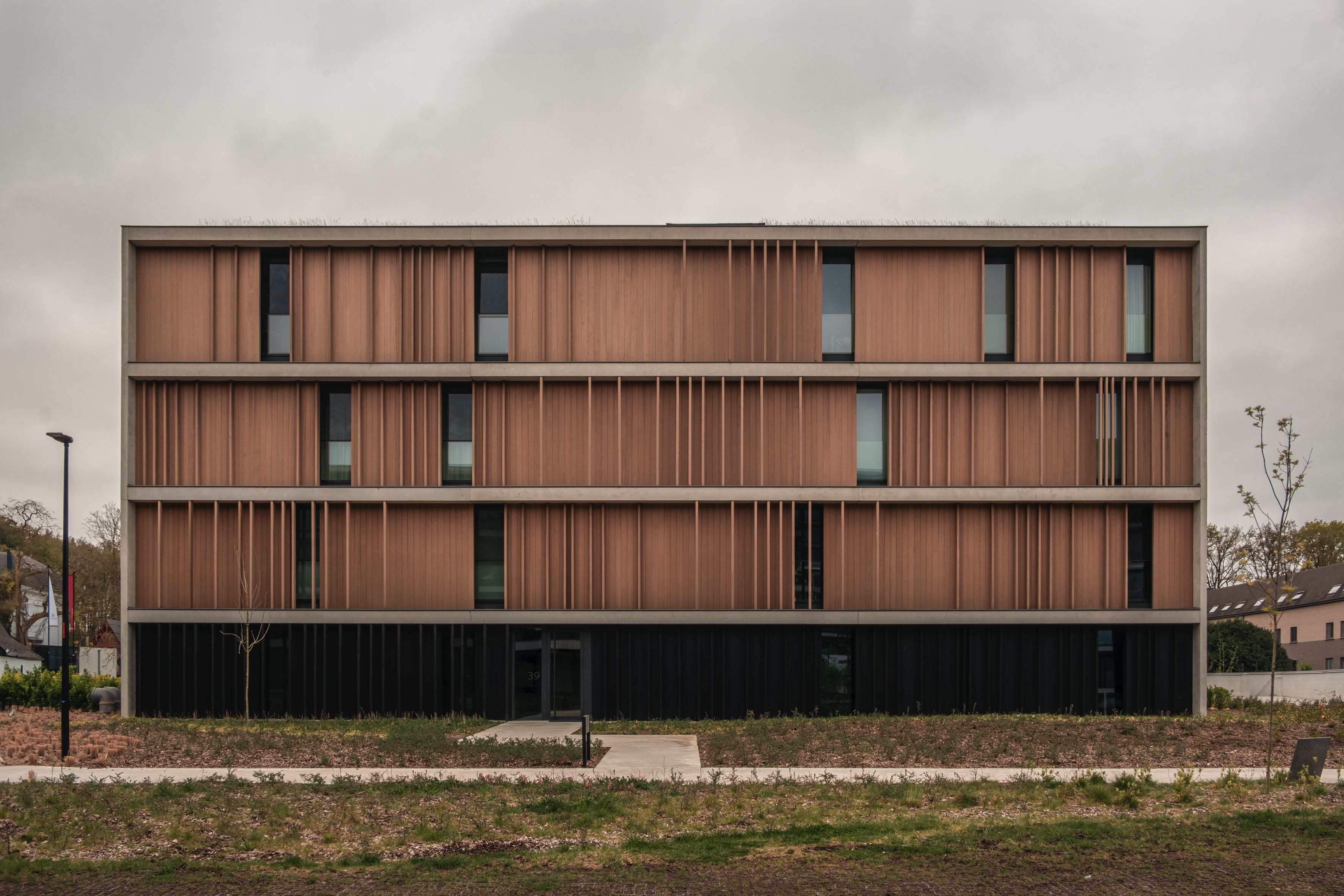 Des lignes épurées, un rythme maîtrisé et un haut niveau de détail — caractéristiques de Govaert & Vanhoutte Architects — définissent l’ensemble. Le choix d’un bardage issu de la collection Fassade renforce cette lecture architecturale.